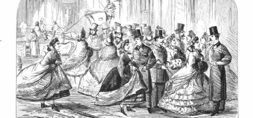 Hats called cart-wheel hats were mostly overblown with artificial flowers and feathers, and all things fancy. Hats remain a part of women’s attire to this day, the racing season a case in point.